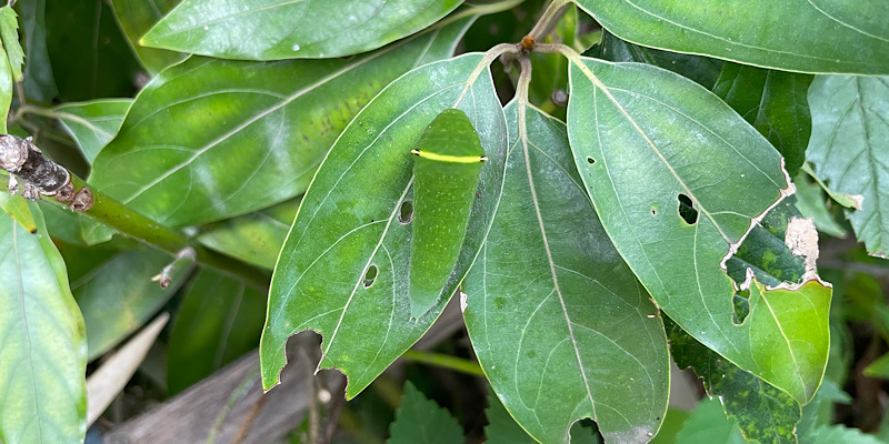 アオスジアゲハの幼虫。クスノキやシロダモの葉っぱにいるらしい。蛍光灯つけてるみたいでかわいい。