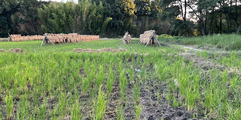 畦の草刈りをしたり、稲を育てたり、稲をかける為に竹を切り出したり。そんな作業が生き物のためにもなって、自分たちにはお米というご褒美が秋にできる。